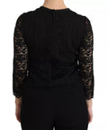 Black Lace Long Sleeve Blouse Nylon Top