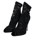 Black Lace Stretch Heels Mid Calf Boot Shoes