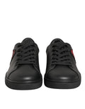 Gorgeous brand new, 100% Authentic Dolce & Gabbana sneakers, crafted in sleek black leather and detailed with a dazzling red crystal heart patch. A perfect blend of bold design and refined craftsmanship, these sneakers elevate any casual or chic outfit.