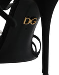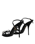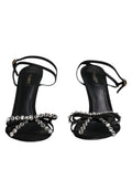 Black Leather Crystal Heels Sandals Shoes