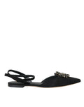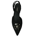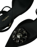 Black Leather Crystal Slingback Sandals Shoes