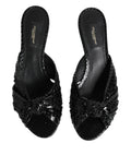 Black Leather Heels Slides Sandals Shoes