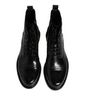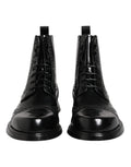 Black Leather Lace Up Mid Calf Boots Shoes
