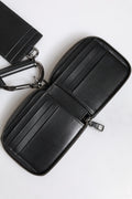 Black Leather Lanyard Zip Around Card Holder Wallet