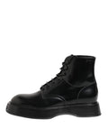 Black Leather Logo Ankle Boots Lace Up Shoes