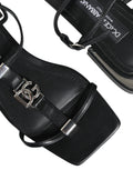Black Leather Logo Ankle Strap Keira Sandals Shoes