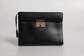 Black Leather Logo Plaque Document Briefcase Bag