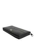 Black Leather Logo Plaque Zip Around Continental Wallet