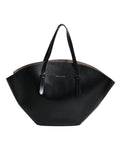Black Leather Logo Shoulder Strap Shopping Tote Bag