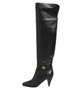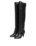 Gorgeous brand new, 100% Authentic Dolce & Gabbana over-the-knee boots, crafted from premium black leather. Featuring a sleek pointed toe, slim high heel, and gold-tone DG logo hardware at the ankle, these boots are designed to make a bold statement while remaining timeless and versatile.