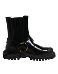 Black Leather Slip On Stretch Trekking Boots Shoes
