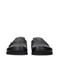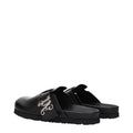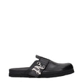 The product with MPN PMIJ00ALEA0011000 and code F84534 leather in black is a slippers and clogs designed by Palm Angels. It has features like side logo.