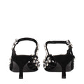 The product with MPN SH00844LBT007SA100 and code F84539 suede in black is a sandals designed by The Attico. It has features like studs, front logo.