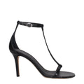 Black Leather Stiletto Heel Sandals