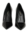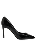 pumps are crafted from premium black leather, exuding timeless sophistication and Italian craftsmanship. Designed with a classic pointed toe and sleek stiletto heel, they enhance a refined silhouette perfect for any formal or evening occasion. A versatile and elegant addition to your luxury footwear collection.