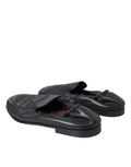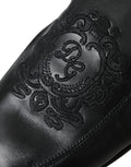 Black Logo Embroidered Leather Loafer Men Dress Shoes
