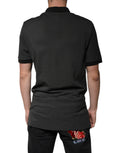 Black Logo Print Collared Cotton Polo T-shirt