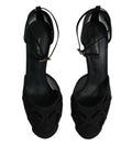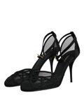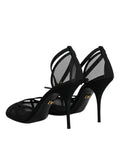 Black Mesh Ankle Strap Heels Pumps Shoes