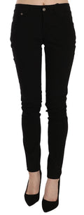 Black Mid Waist Slim Fit Skinny Denim Casual Pants Jeans
