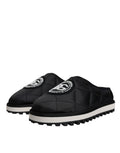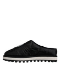 Black Nylon Quilted Logo Patch Sandals Slides Shoes