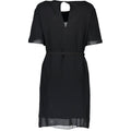 Indulge in the fashion-forward panache of Love Moschino with this chic short dress. Exemplifying sophistication with its sleek black hue, this piece accentuates a feminine silhouette with its flirty short sleeves and classic round neck. The back closure ensures a perfect fit, while the distinctive application and bold logo showcase your penchant for high-end style with a playful twist.