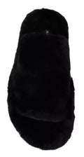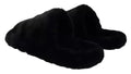 Black Polyester Faux Fur Mens Flats Sandals Shoes