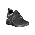 Elevate your sneaker game with Laura Biagiotti’s bold offering, a fusion of comfort and dazzling style. Every step shines with the sparkle of rhinestones while contrasting details add a striking edge to these black lace-ups. Boasting an on-trend 6 cm platform, each pair is a statement of high fashion with delicate embroidery that proudly showcases the iconic logo. Built for the pavements but destined for the spotlight.