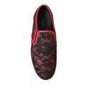 Black Red Lace Slip On Low Top Sneakers Shoes
