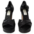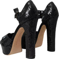 Black Sequin Ankle Strap Heels Sandals Shoes