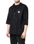 Black Short Sleeves Button Down Casual Shirt