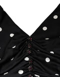 Black Silk Polka Dot V-neck Tassel Midi Dress