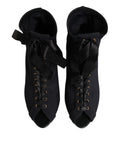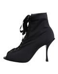 Black Stiletto Heels Lace Up Boots Shoes