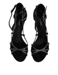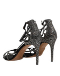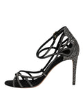 Black Strass Ankle Strap Heels Sandals Shoes