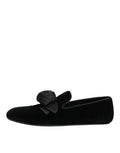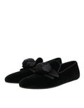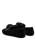 Black Suede Cotton Rose Slip On Loafers Shoes