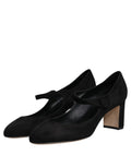 Black Suede Leather Block Heels Pumps Shoes