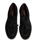 Black Suede Tassel Embellished Loafers Shoes
