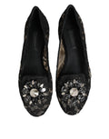 Black Taormina Lace Crystals Flats Shoes