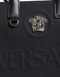Black Top Handle Canvas Leather Logo Crossbody Tote Bag