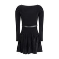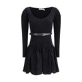 Self-Portrait’s chenille knit Dress expresses timeless elegance through soft lines and refined details. Made of stretchy black chenille, it features a boat neckline, long sleeves and a slightly dropped waist that flatters the silhouette. The skirt is embellished with a delicate scalloped detail, while the removable belt at the waist discreetly defines the figure. A sophisticated garment, ideal for evening occasions or everyday looks with an elegant touch.