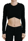 Black Viscose Cropped Round Neck Long Sleeves Top