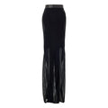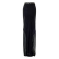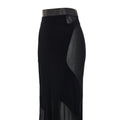 Tom Ford Black Sheer Viscose Long Skirt. Organza-effect fabric with sheer details, black leather waistband, covered back zip closure, maxi back slit, straight fit.