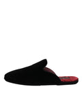 Black Viscose Velvet Slides Flat Slipper Shoes