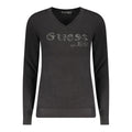 Embrace the sophistication of Guess Jeans with this stunning long-sleeved t-shirt, tailored to make a statement. Featuring a chic V-neck and adorned with exquisite embroidery and sparkling rhinestone applications that catch the light with every movement. Flaunt the iconic Guess logo as you step out with confidence. Perfect for elevating any ensemble, this piece blends luxe allure with contemporary flair.