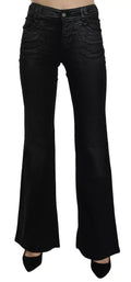 Black Washed High Waist Flared Denim Casual Pants Jeans