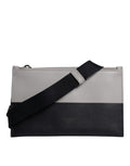 Black White Leather Logo Embossed Crossbody Bag