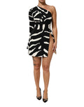Gorgeous brand new, 100% Authentic Dolce & Gabbana dress. A striking and modern piece that exudes confidence, crafted from sleek black and white fabric with a one-shoulder design and daring high slit for a bold, elegant silhouette. Perfect for cocktail parties, evening events, or nights out where making a statement is key.