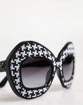 Black White PIED DE POULE Print Oversized Shades Sunglasses
