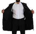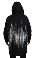 Black White Print Long Hooded Coat Nylon Jacket