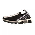 Gorgeous preowned, 100% Authentic Dolce & Gabbana iconic Sorrento slip-on sock shape sneakers in stretch mesh with logo tape print, stretch tape on the back and geometric rubber sole.
