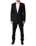 Gorgeous brand new, 100% Authentic Dolce & Gabbana black, two pieces suit is crafted from a virgin wool blend and features a jacket with a shawl lapel, long sleeves, a chest pocket, side flap pockets and button cuffs. The trousers feature a mid rise, a button and zip fly, a waistband with belt loops, side pockets, back pockets and a regular length.